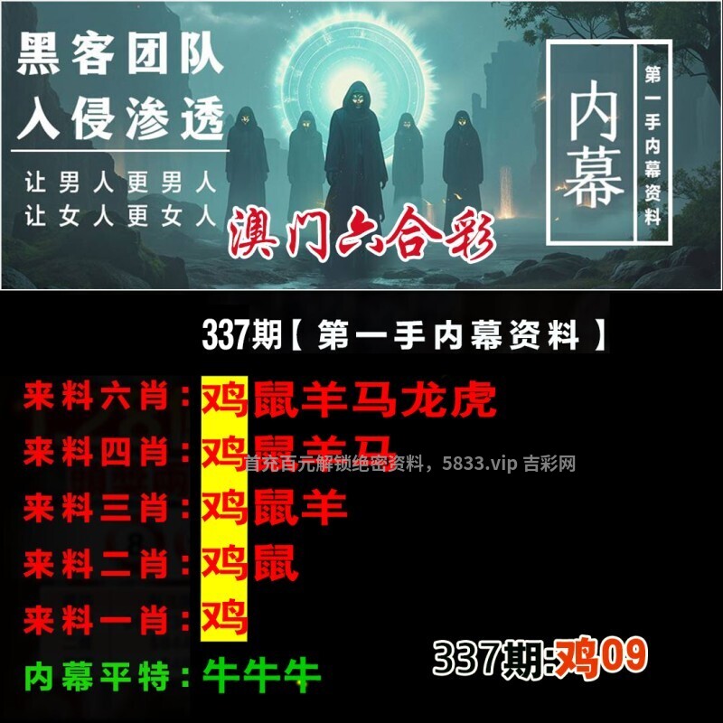 | 337期:绝杀二尾【3尾+4尾】开:鸡09中 |